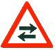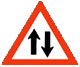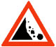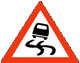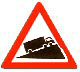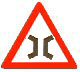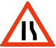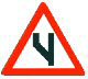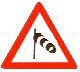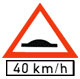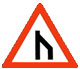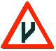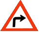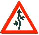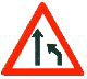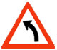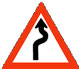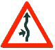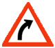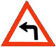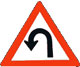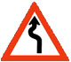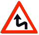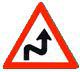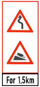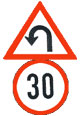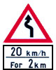 Caution winding road, first left for specified distance, do not exceed specified km/h