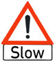 Caution slow moving vehicles down winding road (first left) for specified distance